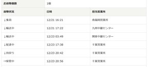 早ければ翌日に届くものが、 今回は 3日かかる計算。